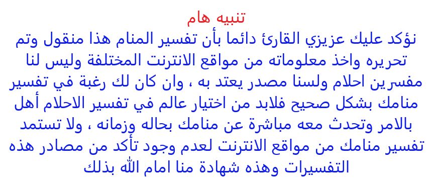 نصيحة : ينبغي للإنسان أن لا يتعلق بالأحلام ولا يهتم بها وليعرض عنها؛ لأنه إذا اهتم بها واغتم عند المكروه منها لعب به الشيطان وصار يوريه في منامه أشياء تزعجه وتشوش عليه ( الشيخ محمد بن صالح ابن عثيمين )
