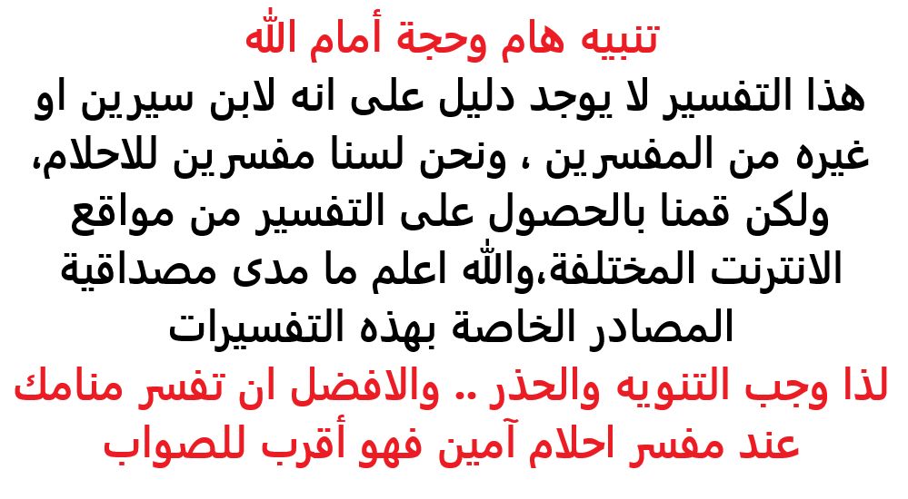 انتبه: مضمون هذا الخبر تم كتابته بواسطة ابن سيرين ولا يعبر عن وجهة نظر مصر اليوم وانما تم نقله بمحتواه كما هو من ابن سيرين ونحن غير مسئولين عن محتوى الخبر والعهدة علي المصدر السابق ذكرة.