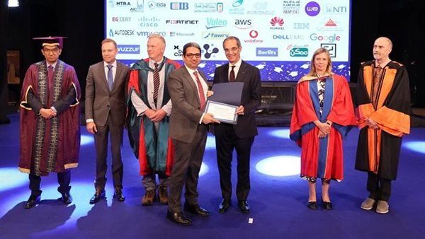 شهد الدكتور عمرو طلعت وزير الاتصالات وتكنولوجيا المعلومات فعاليات حفل تخرج طلاب مبادرة بُناة مصر الرقمية والتى أطلقتها وزارة الاتصالات وتكنولوجيا المعلومات؛ حيث تم منح درجة الماجستير المهنى لعدد 257 طالب فى تخصصات الذكاء الاصطناعى وعلوم البيانات، والفنون الرقمية، والتكنولوجيا المالية، وعلوم الروبوتات والأتمتة، والأمن السيبرانى بالتعاون مع جامعات أوتاوا وكوينز الكنديتان، وكولدج كورك الأيرلندية، وجامعة سينز الماليزية؛ وذلك خلال الحفل الذى أقيم فى قاعة الاحتفالات الكبرى بجامعة القاهرة بحضور ممثلى الجامعات الدولية، والسفراء، وممثلى الشركات المحلية والعالمية المشاركة فى المبادرة، وأهالى الخريجين.
