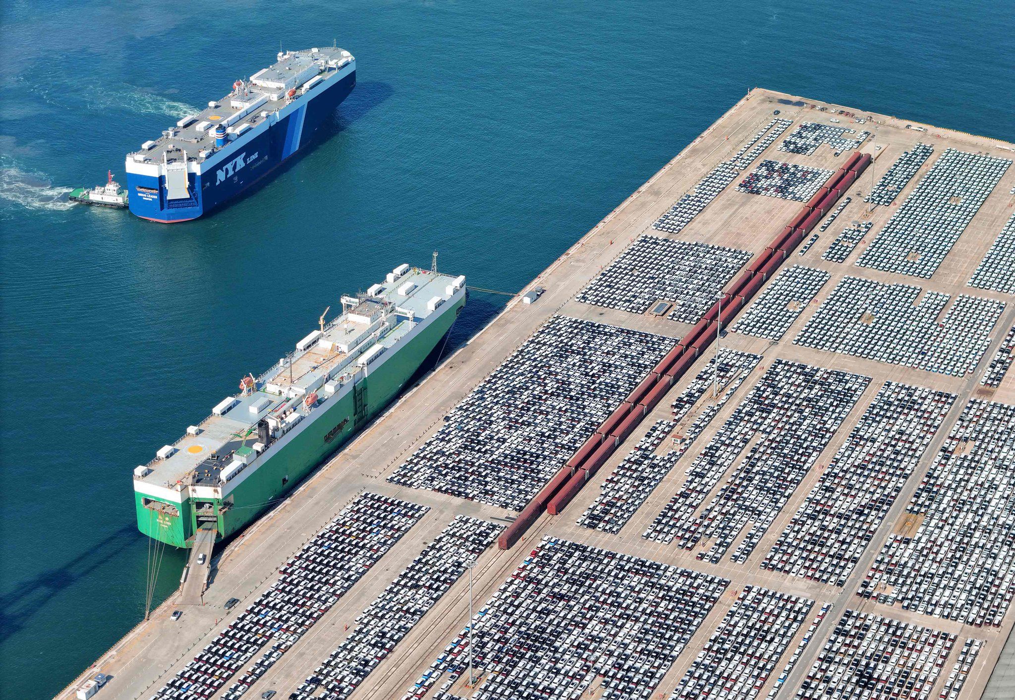#صور | أسطول من السيارات الجديدة في ميناء يانتاي الصيني قبيل شحنها لتصديرها إلى الخارج. "الفرنسية"