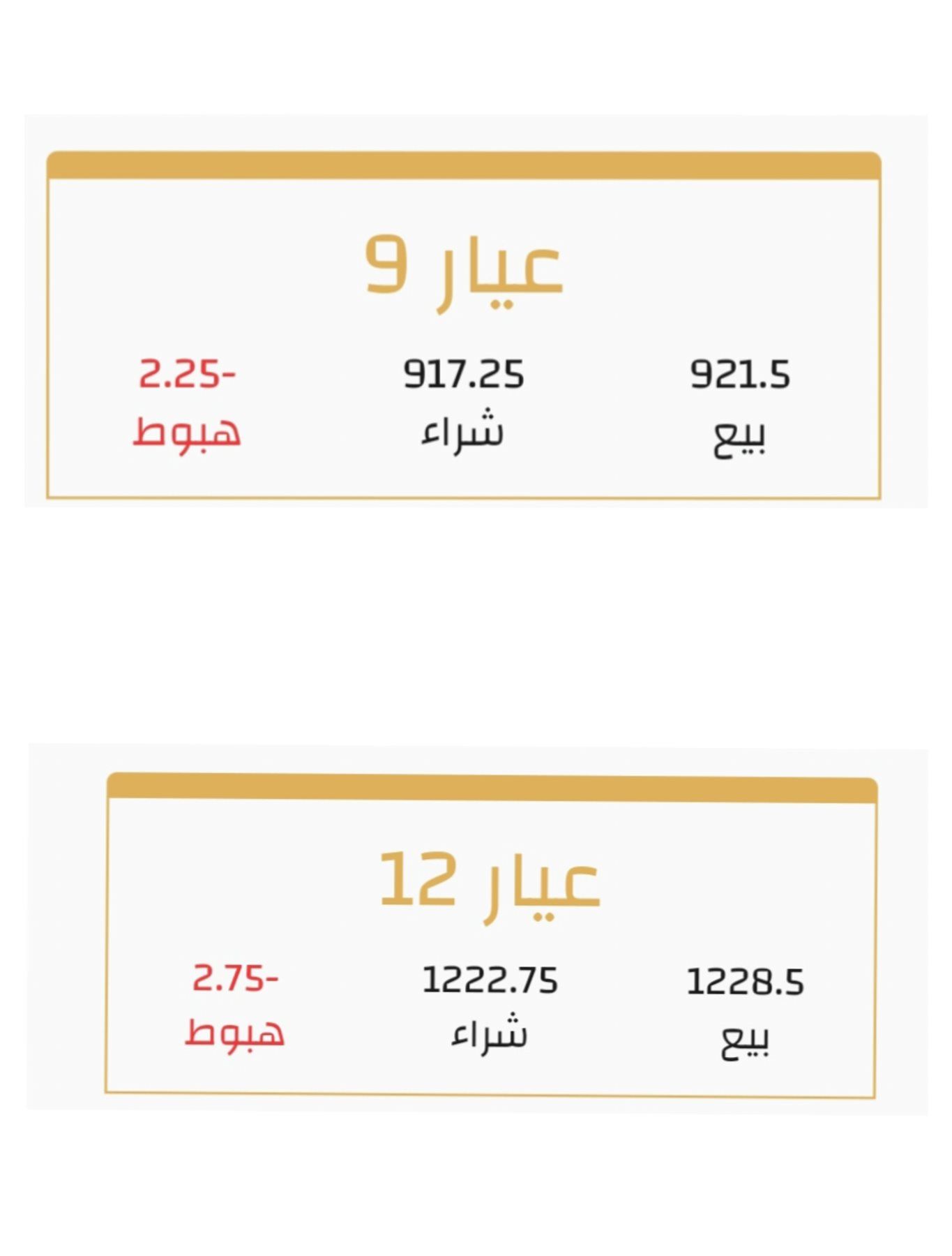 سجل سعر الذهب عيار 9 اليوم الثلاثاء 3 أكتوبر في الأسواق المصرية 921 جنيهًا للبيع و917 جنيهًا للشراء. وبهذا يكون سجل انخفاضًا في سعره بـ جنيهين و25 قرشًا.