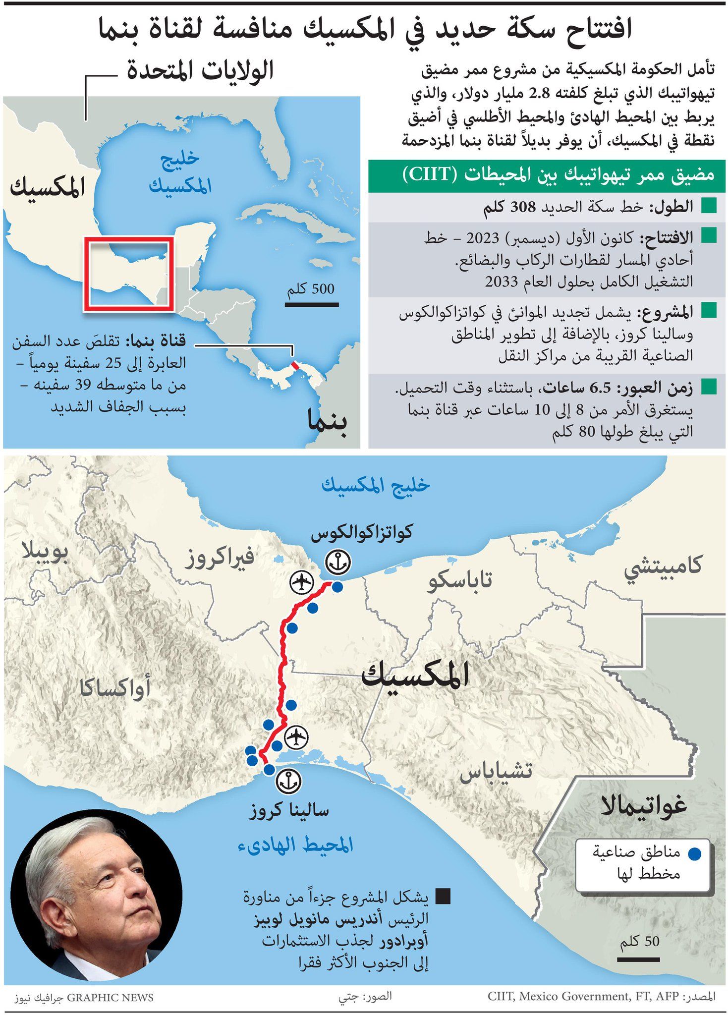 #انفوجرافيك | في المكسيك .. سكة حديد تنافس قناة بنما في نقل البضائع