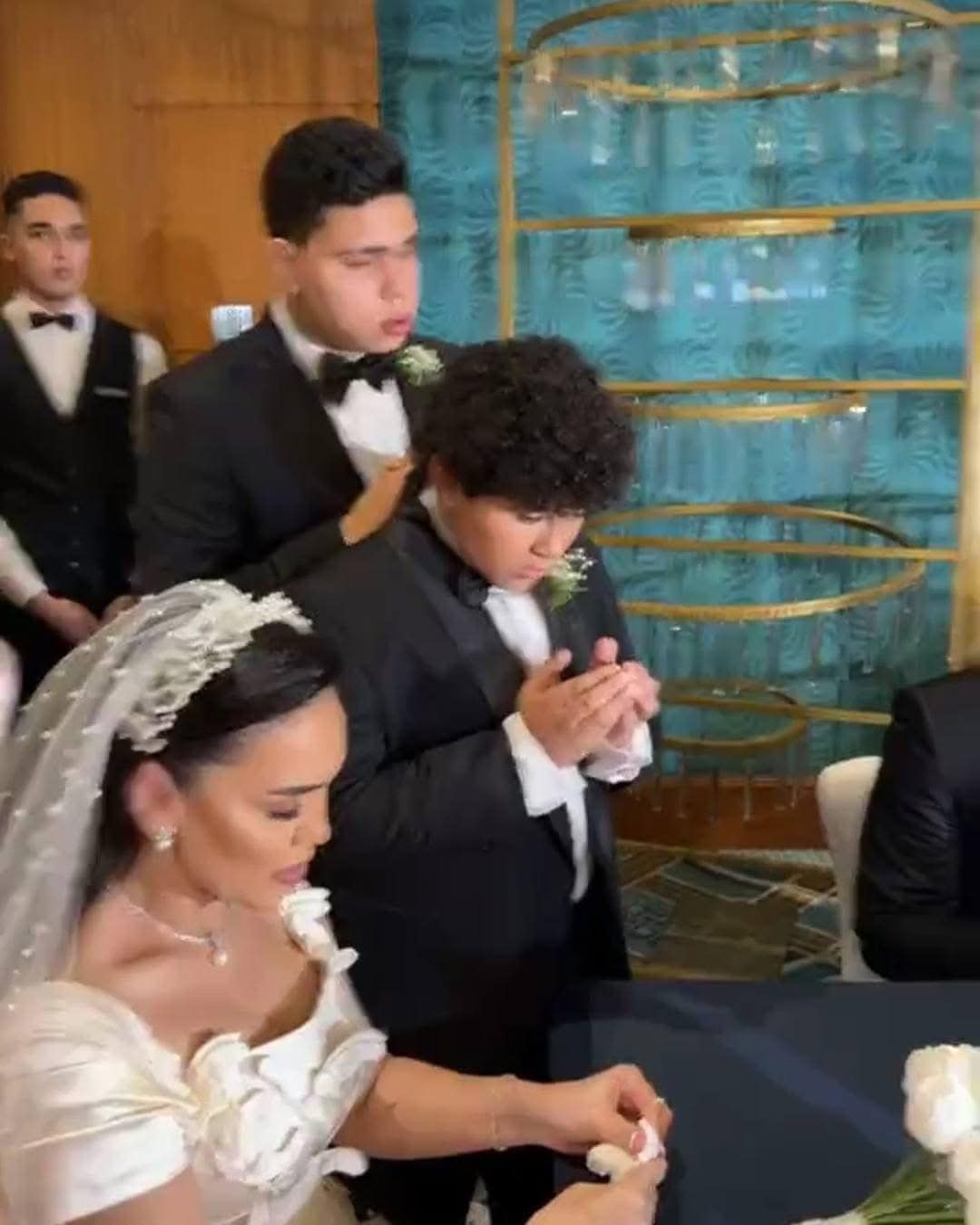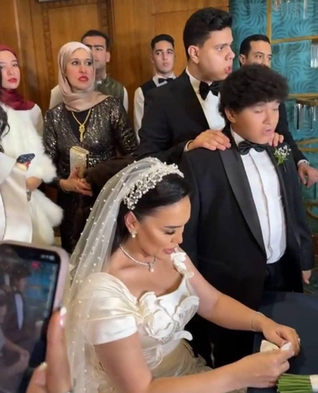 وظهر نجل المطربة مي فاروق متأثرًا أثناء عقد قران والدته، وأبناء مى فاروق من زوجها السابق هما زينة ومالك.