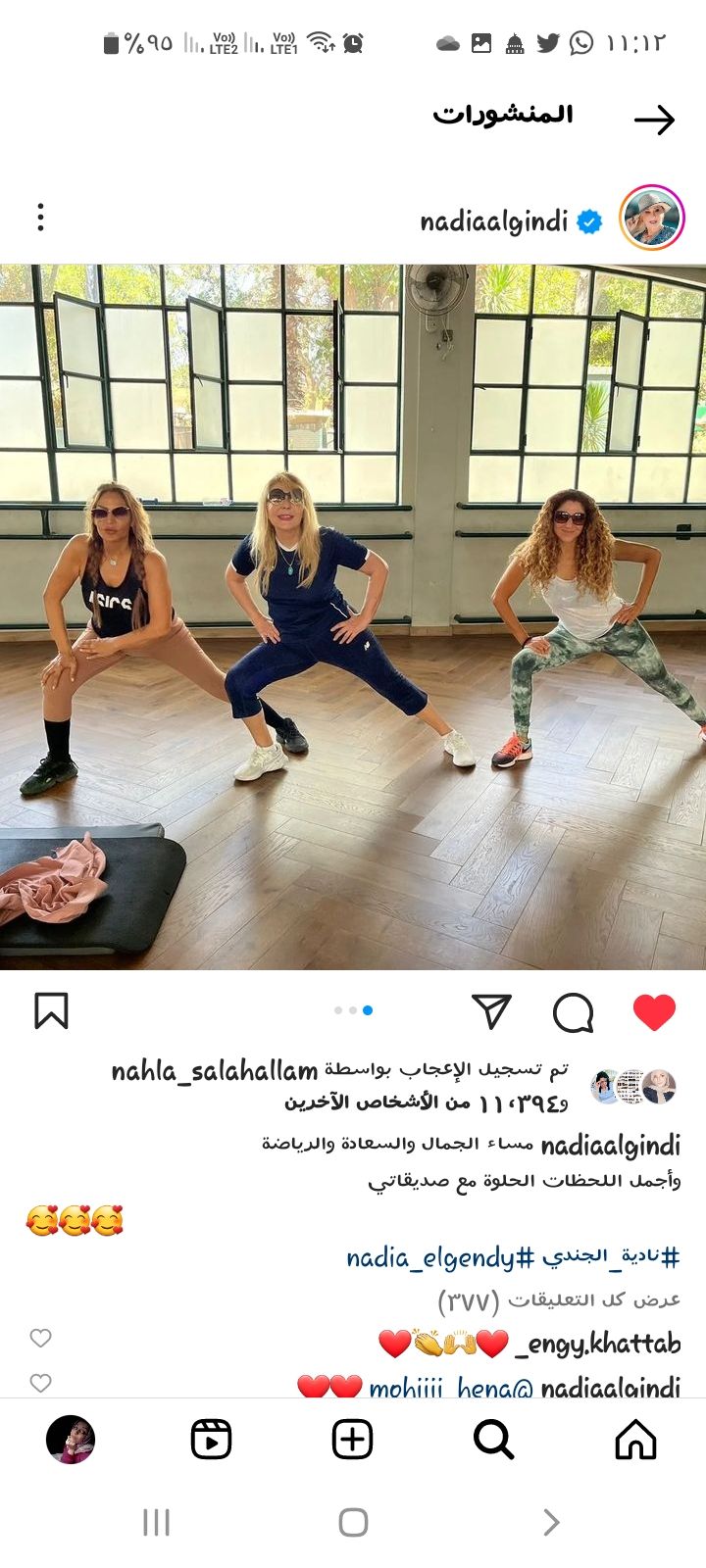 يشار إلى أنه كانت الفنانة نادية الجندي قد نشرت مجموعة من الصور عبر حسابها الشخصي على موقع تبادل الصور والفيديوهات إنستجرام في أحدث ظهور لها بكامل رشاقتها ولياقتها البدنية برفقة أصدقائها، وعلقت عليها قائلة: مساء الجمال والسعادة والرياضة وأجمل اللحظات الحلوة مع صديقاتي
