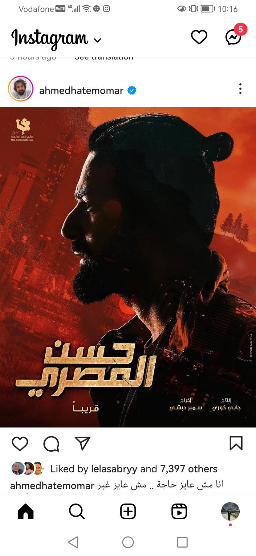 روج الفنان أحمد حاتم لفيلمه الجديد "حسن المصري"، وذلك عبر حسابه الشخصي بموقع تبادل الصور والفيديوهات "إنستجرام".