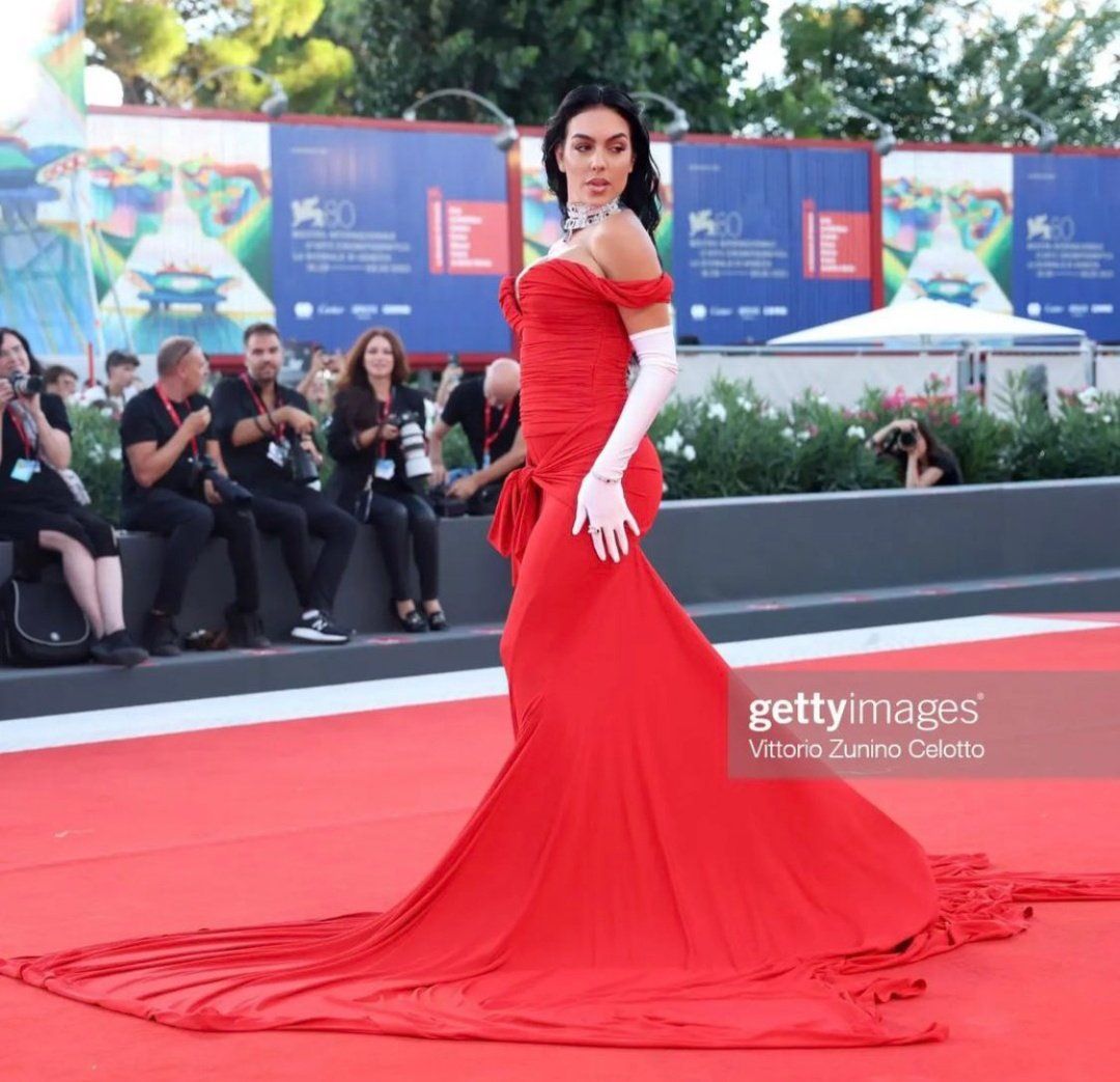 مهرجان فينيسيا، تألقت جورجينا رودريجيز، خطيبة لاعب كرة القدم العالمي كريستيانو رونالدو، خلال مشاركتها في فاعليات مهرجان فينيسيا السينمائي الدولي بنسخته الـ ٨٠.
