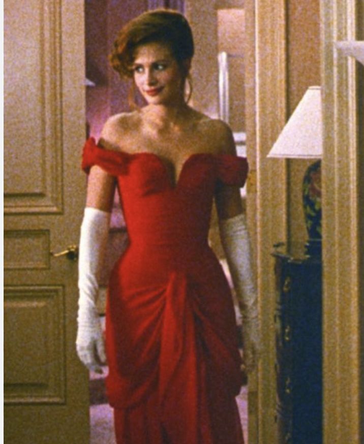وجاء فستان جورجينا، لإعادة إحياء فستان الممثلة الشهيرة جوليا روبرتس، الأيقوني في الفيلم الشهير Pretty Woman، والذي أعاد تصميمه المصمم Gvasalia، الذي أتقن نقل أدق تفاصيل فستان جوليا روبرتس، بدءًا من قفازات الأوبرا البيضاء الطويلة، مرورا بقصة الكتف، حتى القلادة الحمراء التي زينت رقبة روبرتس في الفيلم، لتظهر جورجينا كأنها نسخة طبق الأصل من جوليا.
