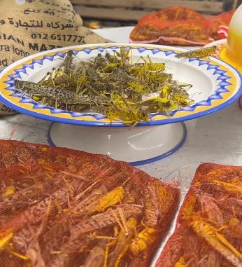 الجراد، تداول نشطاء مواقع التواصل الاجتماعي مقطع فيديو لبيع كيس الجراد بمبلغ 50 ريالا، أي ما يعادل 412 جنيها مصريا، حيث تنتشر عملية بيع الجراد، مع بداية موسم الجراد في المملكة العربية السعودية، وخصوصًا في منطقة القصيم أو المدينة المنورة.