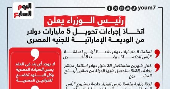 - تسلمنا 5 مليارات دولار دفعة أولى لصفقة "رأس الحكمة".. وغدا 5 أخرى
