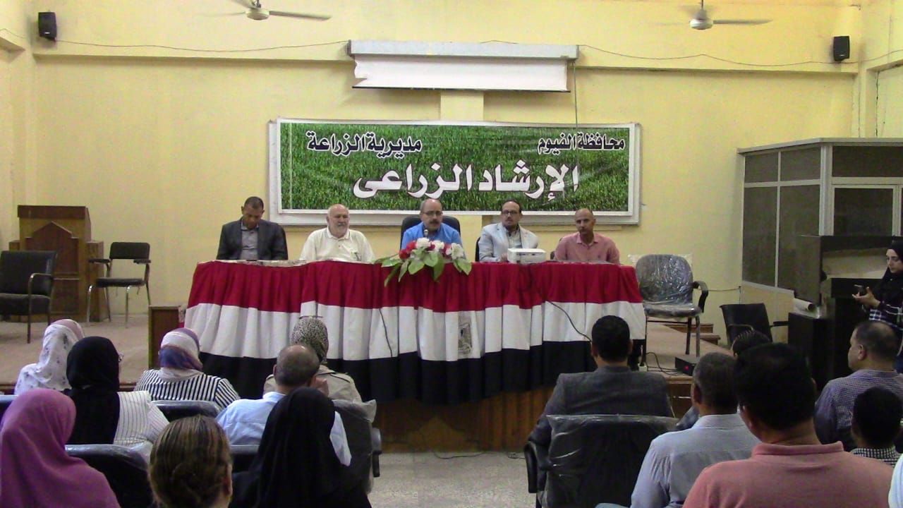 نظمت مديرية الزراعة بمحافظة الفيوم، ندوة للتعريف بالحملة القومية للنهوض بمحصول القمح، بقاعة الإرشاد بالمديرية، استعداد لموسم زراعة القمح، وتعريف المزارعين بأهم الأمراض التى تصيب محصول القمح، وكيفية تشخيصها ومعرفة أعراضها، والمكافحة المتكاملة للأمراض، كما تم تعريف المزارعين بأهم الآفات الحشرية التى تصيب المحصول، والمكافحة المتكاملة لها.