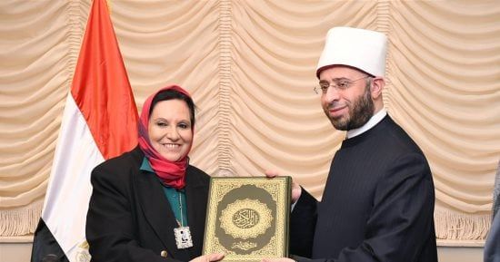 وفي ختام اللقاء أهدى وزير الأوقاف درع وزارة الأوقاف، ونسخة من كتاب الله -عز وجل- للدكتورة مها عقل؛ تقديرًا لإخلاصها وتفانيها في أداء رسالتها. والوزارة إذ تشكر الدكتورة مها عقل على جهودها، فإنها ترجو للواء الدكتور ياسر حسن التوفيق والسداد.
