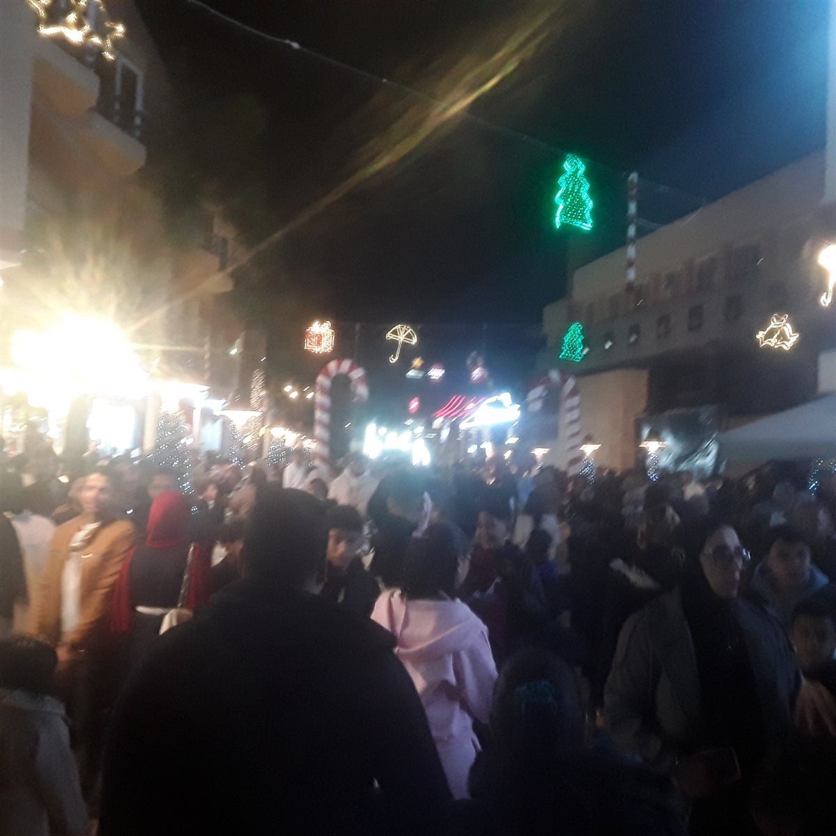 وأقيمت شجرة عيد ميلاد ضخمة، ومجسم لعربة بابا نويل وبوابات مضاءة بالأنوار المبهرة ومجسم كتب عليه 2025 وتحولت أغطية أعمدة الإنارة على هيئة أجراس عيد الميلاد.
