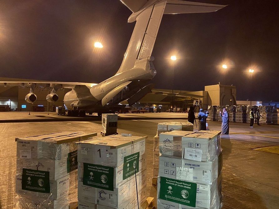 ونشر المركز عبر مواقع التواصل الاجتماعي صورا لعملية تحميل المواد الإغاثية التي تشمل الحقائب الإيوائية والأدوية، إلى الطائرتين في مطار الملك خالد الدولي بالرياص.