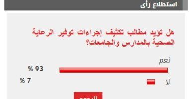 %93 من القراء يؤيدون مطالب تكثيف إجراءات توفير الرعاية الصحية بالمدارس والجامعات