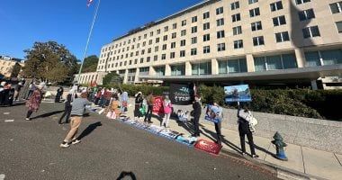وينشر "اليوم السابع" بالصور مشاهد من المظاهرة التى تم تنظيمها أمام وزارة الخارجية الأمريكية.