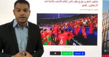 الإثنين، 20 أكتوبر 2025 04:39 صبث تلفزيون اليوم السابع تغطية إخبارية قدمها الزميل محمد جمال حول تتويج منتخب المغرب للشباب بلقب بطولة كأس العالم لكرة القدم تحت 20 عامًا، بعد الانتصار الثمين على منتخب الأرجنتين بهدفين دون رد، فى المباراة النهائية التى جمعتهما فى الساعات الأولى من صباح اليوم الإثنين، للمونديال المقام فى تشيلي.