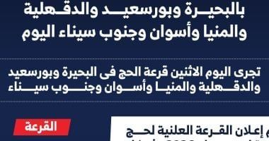وتُقام قرعة يوم الأربعاء الخامس من نوفمبر في مديريات أمن القاهرة وأسيوط والسويس والبحر الأحمر والفيوم والمنوفية، لتُختتم فعاليات القرعة يوم الخميس السادس من نوفمبر في مديريات أمن الجيزة وسوهاج وقنا وشمال سيناء والقليوبية، وبذلك تشمل القرعة جميع محافظات الجمهورية وفق جدول زمني محدد يضمن العدالة والوضوح في توزيع فرص الحج بين المتقدمين.