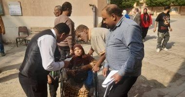 قاض بصفط اللبن يخرج من لجنته لمساعدة سيدة على كرسى متحرك.. صور