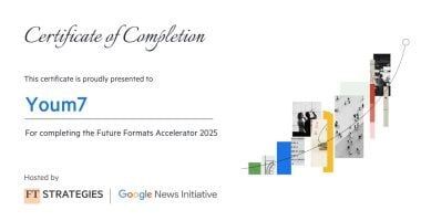 حصدت جريدة اليوم السابع، إلى جانب عدد من صحفييها، اعتمادًا دوليًا رفيع المستوى فى مجال الذكاء الاصطناعي، وذلك عقب استكمالها بنجاح برنامج Future Formats Accelerator 2025 (مسرّع الأشكال المستقبلية 2025) المقدم من مؤسسة فايننشال تايمز بالتعاون مع مبادرة جوجل للأخبار، والهادف إلى تسريع تبنّى تقنيات الذكاء الاصطناعى داخل المؤسسات الإعلامية، ويعزز هذا الإنجاز مكانة «اليوم السابع» كإحدى أبرز المؤسسات الإعلامية فى المنطقة التى تقود مسار التحول الرقمى وتطوير مستقبل المحتوى الإخباري.
