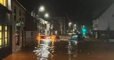 شوارع ويلز تتحول إلى أنهار من المياه بسبب الفيضانات.. فيديو