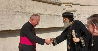 واستمع قداسته لشرح تفصيلى لمحتويات بازيليك القديس بطرس، وحرص مستقبلو قداسة البابا على فتح أبواب البازيليك حتى يتسنى لقداسة البابا ووفد الكنيسة القبطية أن يشاهدوا المنظر من أعلاها فى مشهد بانورامى.