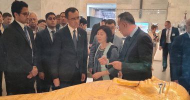واصطحب باسم رؤوف، أمين المتحف، الدكتور ماولين أشيمبايف والوفد المرافق له في جولة داخل قاعات العرض المختلفة بالمتحف، وقدم لهم خلالها شرحًا وافيًا عن المتحف، وما يحتويه من آثار تروي تاريخ مصر عبر العصور التاريخية المختلفة.