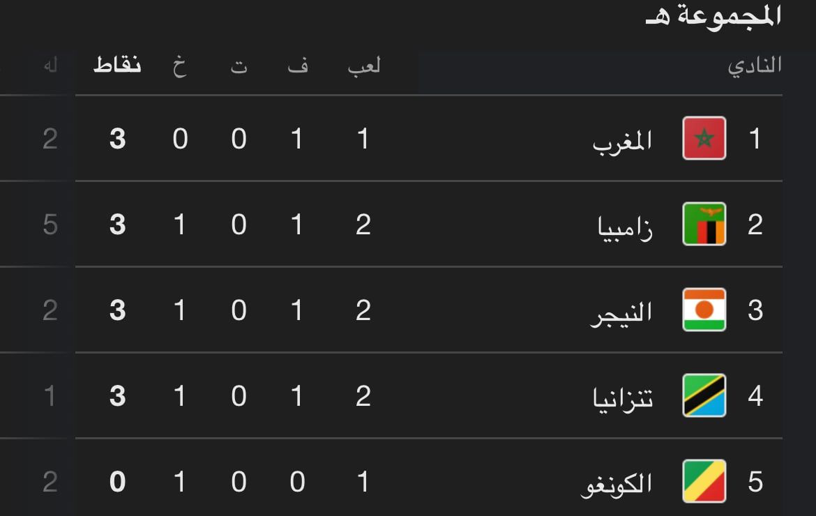 جدير بالذكر أن المنتخب المغربي خاض مباراة واحدة في التصفيات فيما خاص منتخب زامبيا مباراتين.