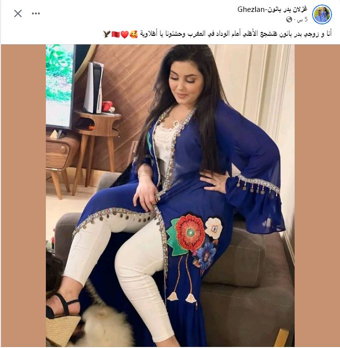 وقالت غزلان على صفحتها الشخصية بـ"فيس بوك": "أنا وزوجي بدر بانون هنشجع الأهلي أمام الوداد في المغرب وحشتونا يا أهلاوية".