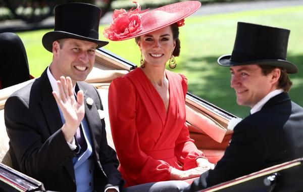 بينما بدا الأمير ويليام أنيقاً بقبعة وبدلة، ظهرت كيت بفستان أحمر من تصميم ألكسندر ماكوين (مصمم فستان زفافها الملكي) مع قبعة مطابقة من فيليب تريسي. كما أنها مزينة بأقراط ذهبية رائعة وحقيبة يد صغيرة. وقد وصل الأمير ويليام والأميرة كيت لليوم الرابع من الحدث السنوي في موكبٍ ملكي، راكبين عربة تجرها الخيول خلف الملك تشارلز والملكة كاميلا. وانضمت الأميرة بياتريس، إلى أمير وأميرة ويلز في العربة، وزوجها إدواردو مابيلي موزي