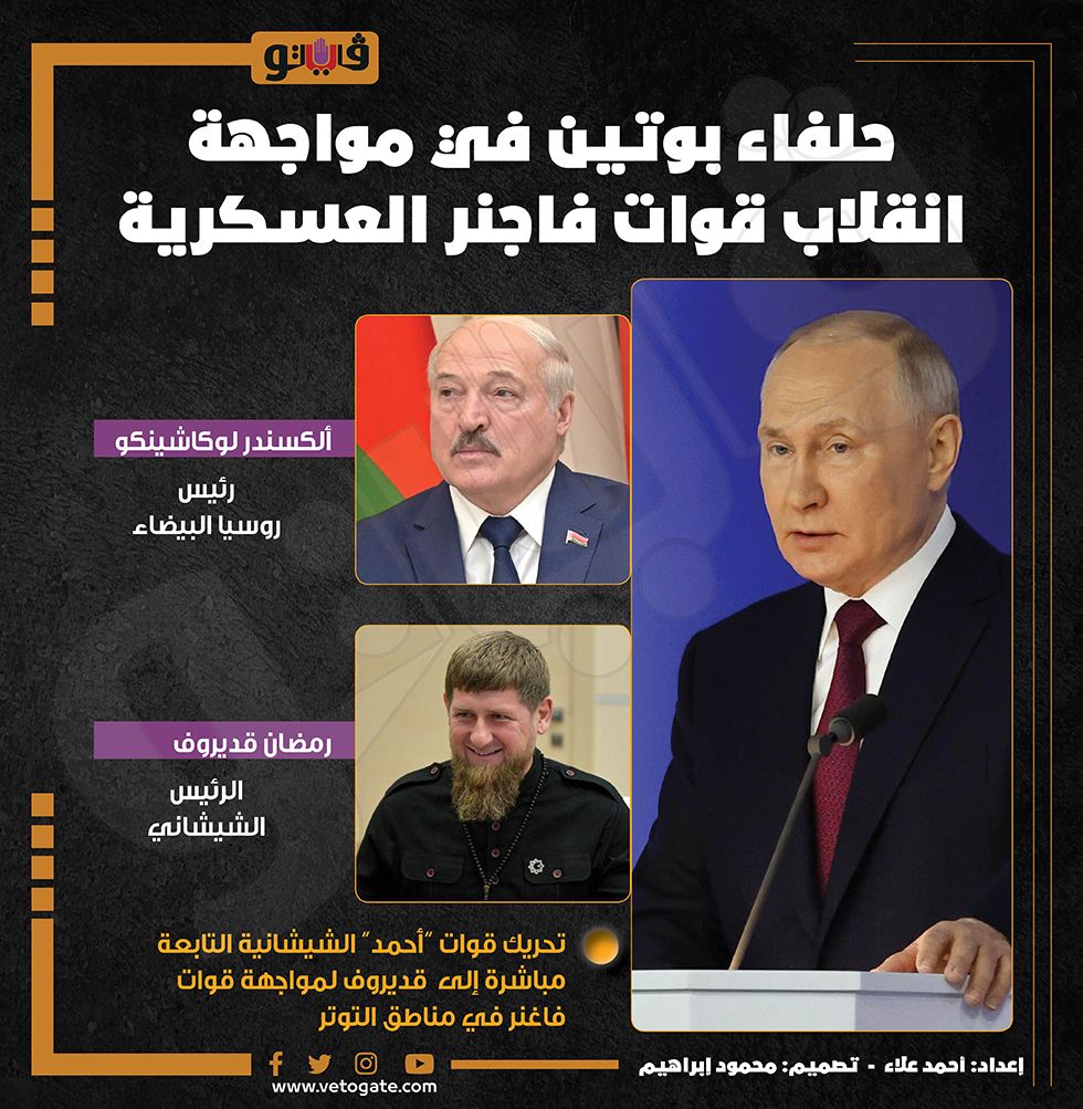 ومن ناحيته أخطر الرئيس الروسي فلاديمير بوتين، صباح اليوم السبت، رئيس روسيا البيضاء ألكسندر لوكاشينكو بالوضع في روسيا، بحسب رسالة منشورة على القناة الرسمية لرئاسة دولة روسيا البيضاء على تطبيق "تيليجرام".
