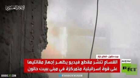 نشرت كتائب القسام مقطع فيديو يظهر إجهاز مقاتليها على قوة خاصة إسرائيلية متمركزة داخل مبنى في بيت حانون بالرشاشات والقذائف المضادة للتحصينات والدروع